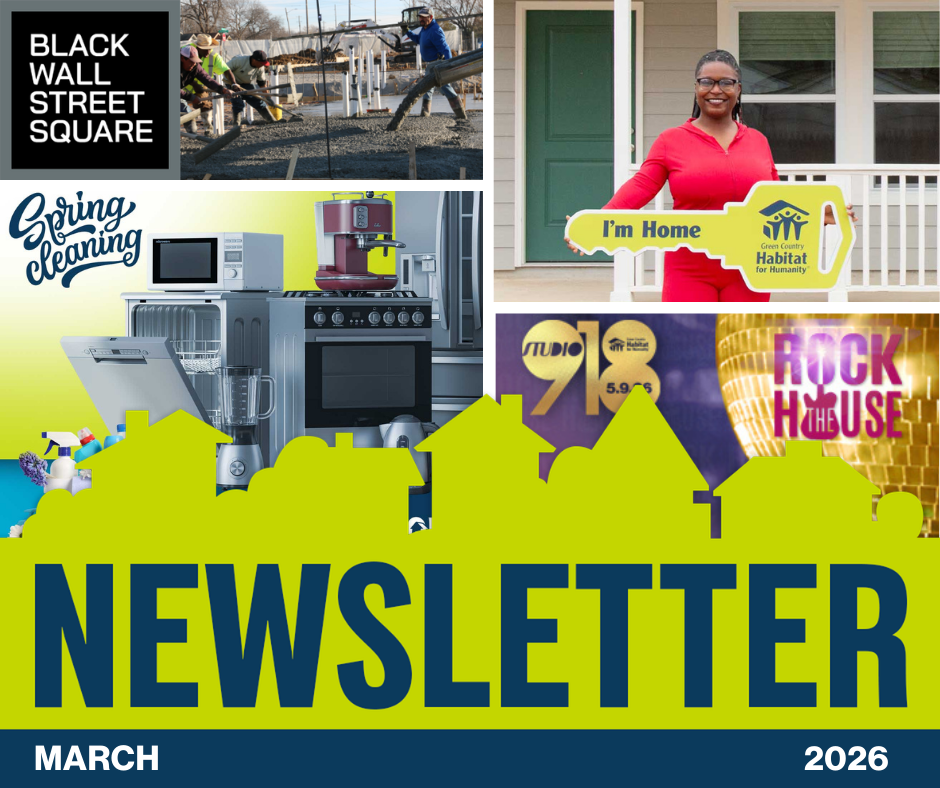 Our March newsletter is here! Read all about the great things happening in our community. This month’s edition features the story of our newest homeowner, the excitement building around Rock the House: Studio 918, updates on Black Wall Street Square, and more.