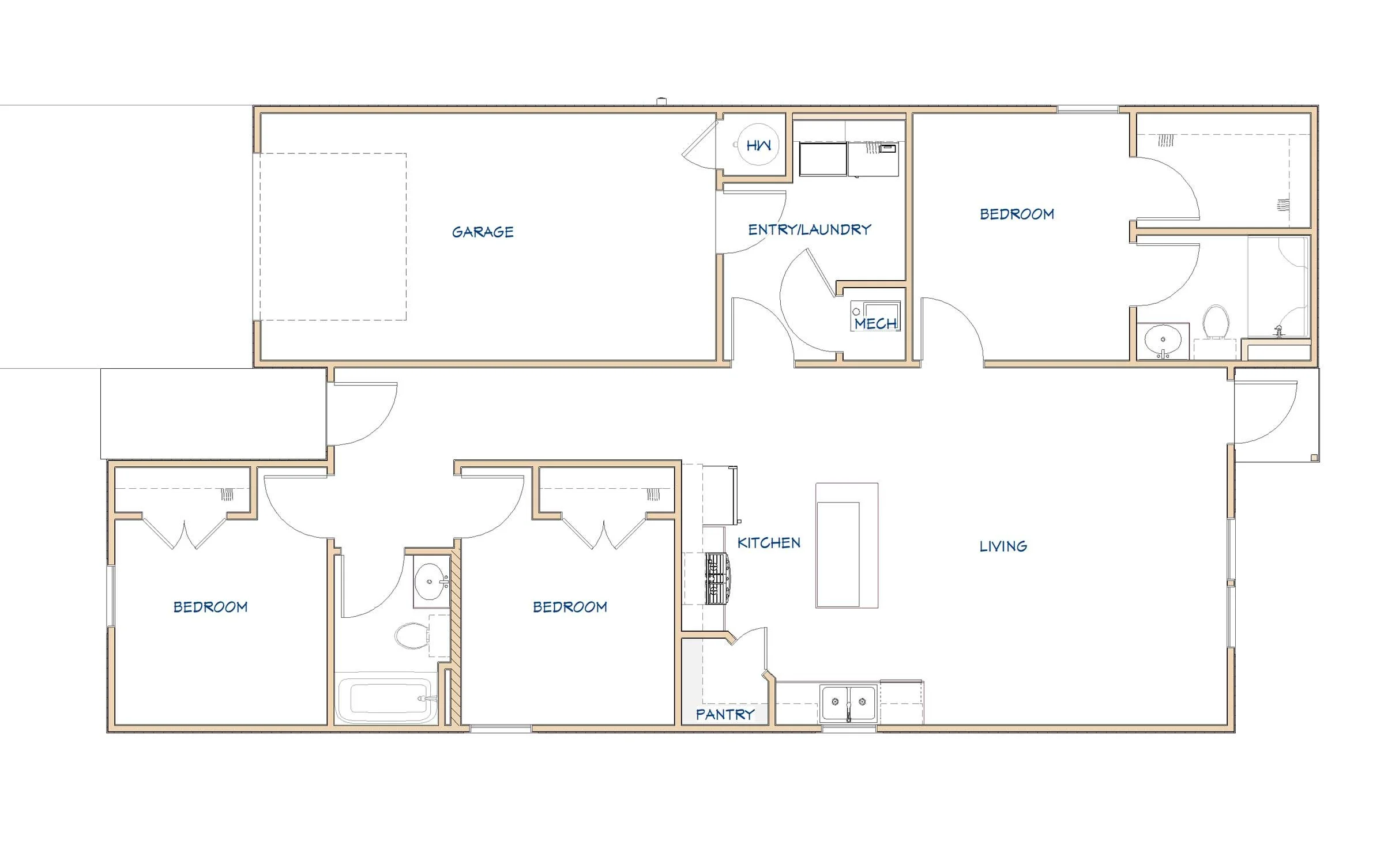 *Note: All dimensions shown are approximate and provided for home buyer information, and not used for construction of the home. Green Country Habitat for Humanity/Boomtown Development Company reserves the right to make minor revisions as needed to meet local building code or make adaptations for accessibility needs.